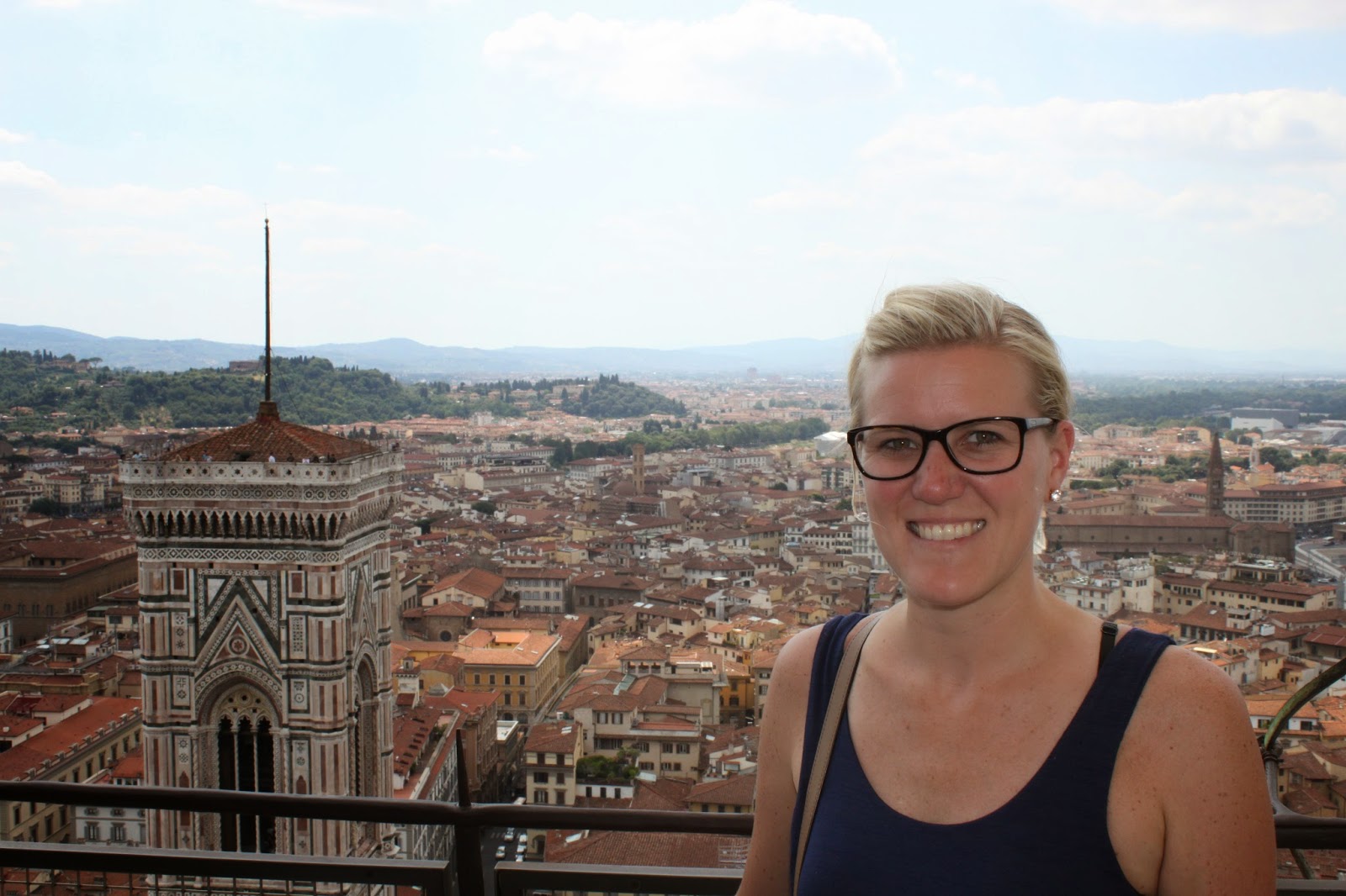 We headed over to Cathedral of Santa Maria del Fiore (the duomo in Florence) next. We had decided early on that we were going to climb to the top but because I am so scared of heights, I wanted to wait until the next day. We got in line at the FC entrance and waited to be let in to check out ground floor church area. However, when we got inside we were immediately directed up a flight of stairs. We'd barely gone up two stairs when I realized that we were headed to the top. I panicked slightly. I was so unprepared! I wasn't mentally ready to climb to the top! But, I had no choice so to the top we went. I was terrified but the views are so, so worth it in the end!